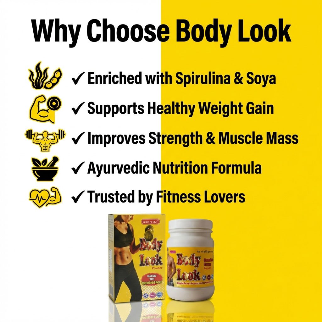 Body Look powderis a step in the right direction for building strong bodies. This medicine is made up of a blend of nutrients that are well-balanced and easy to digest, such as vitamins.Protein-rich soya powder aids muscular growth. Amino acid chain and tissue .Ashwagandha, the greatest weight gain tonic, is included in the body look powder. Spirulina is the richest natural source of protein, iron, vitamins, and minerals. Bodybuilders, sports trainers, and enthusiasts will benefit from the body look cap and powder.