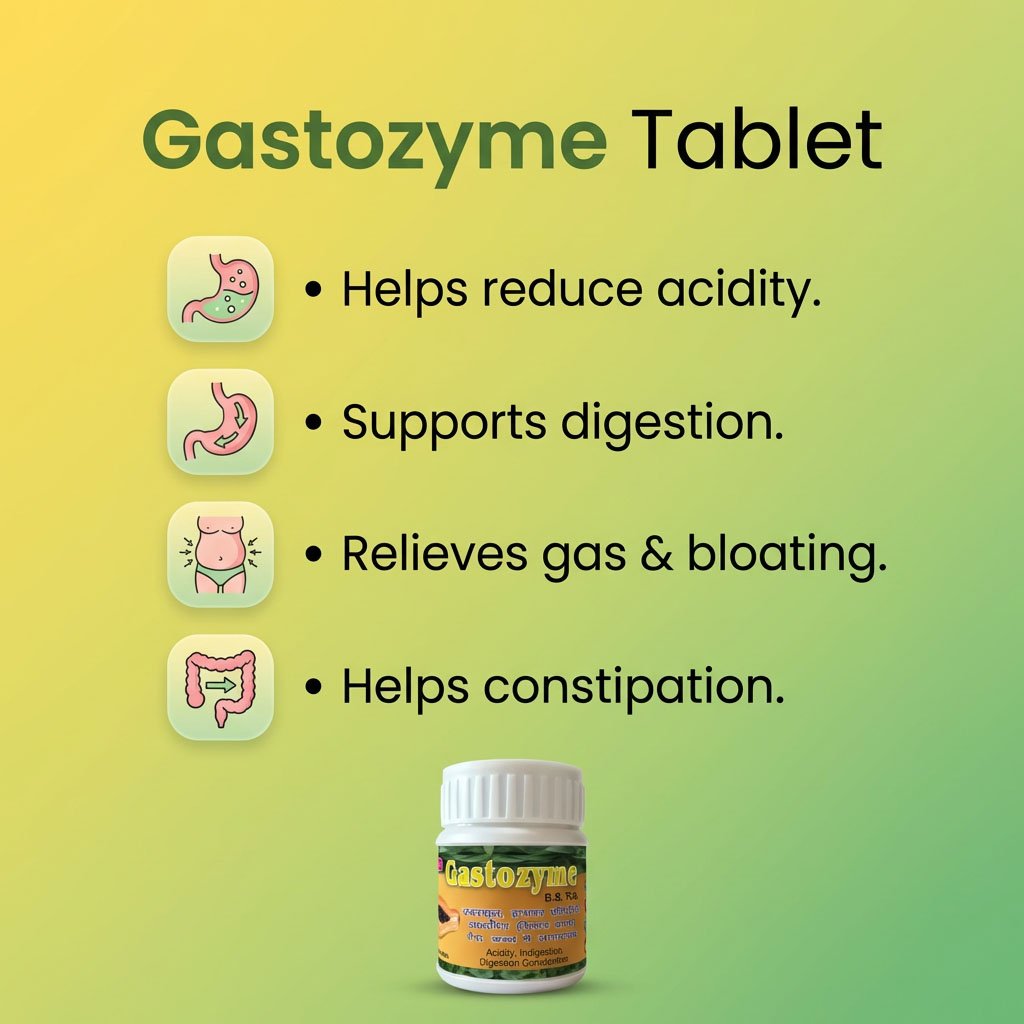 Gastozyme D.S. Tablets are a traditional Ayurvedic digestive support formula developed to help manage acidity, hyperacidity, indigestion, gas formation, and constipation.
