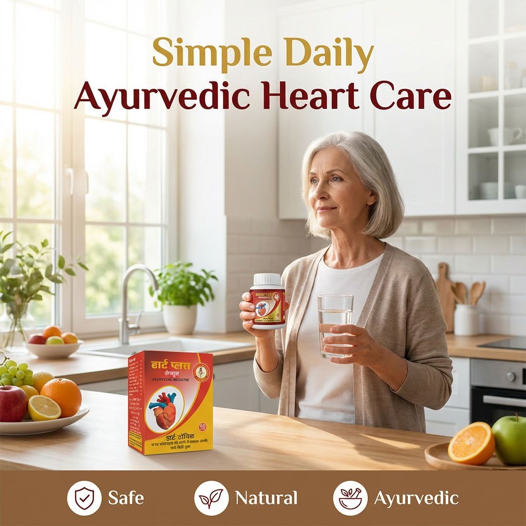 Heart Plus Capsule specially selected Ayurvedic herbs se bana hai jo heart function ko support karte hain, bad cholesterol (LDL) ko control karne mein madad karte hain aur blood flow ko smooth banate hain.