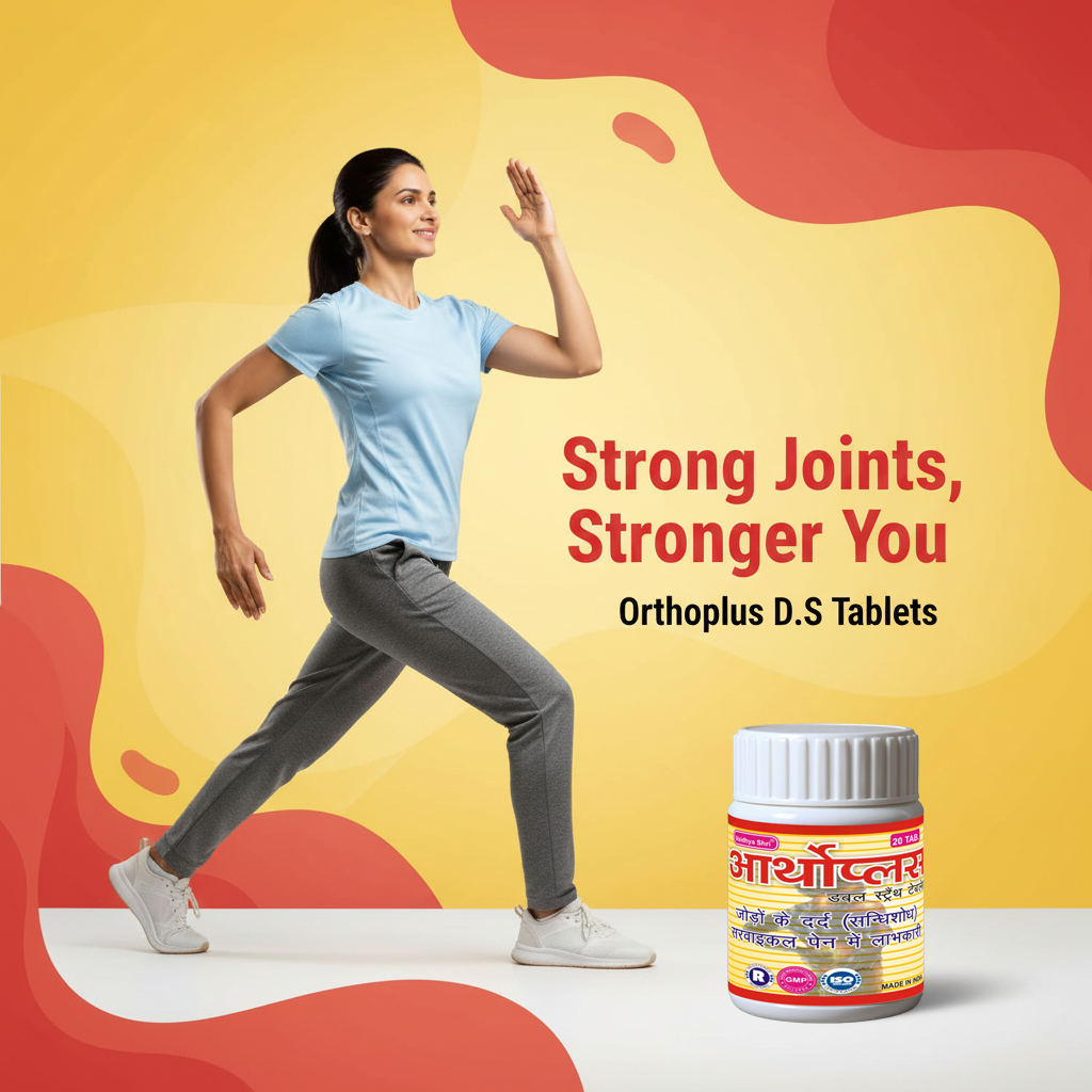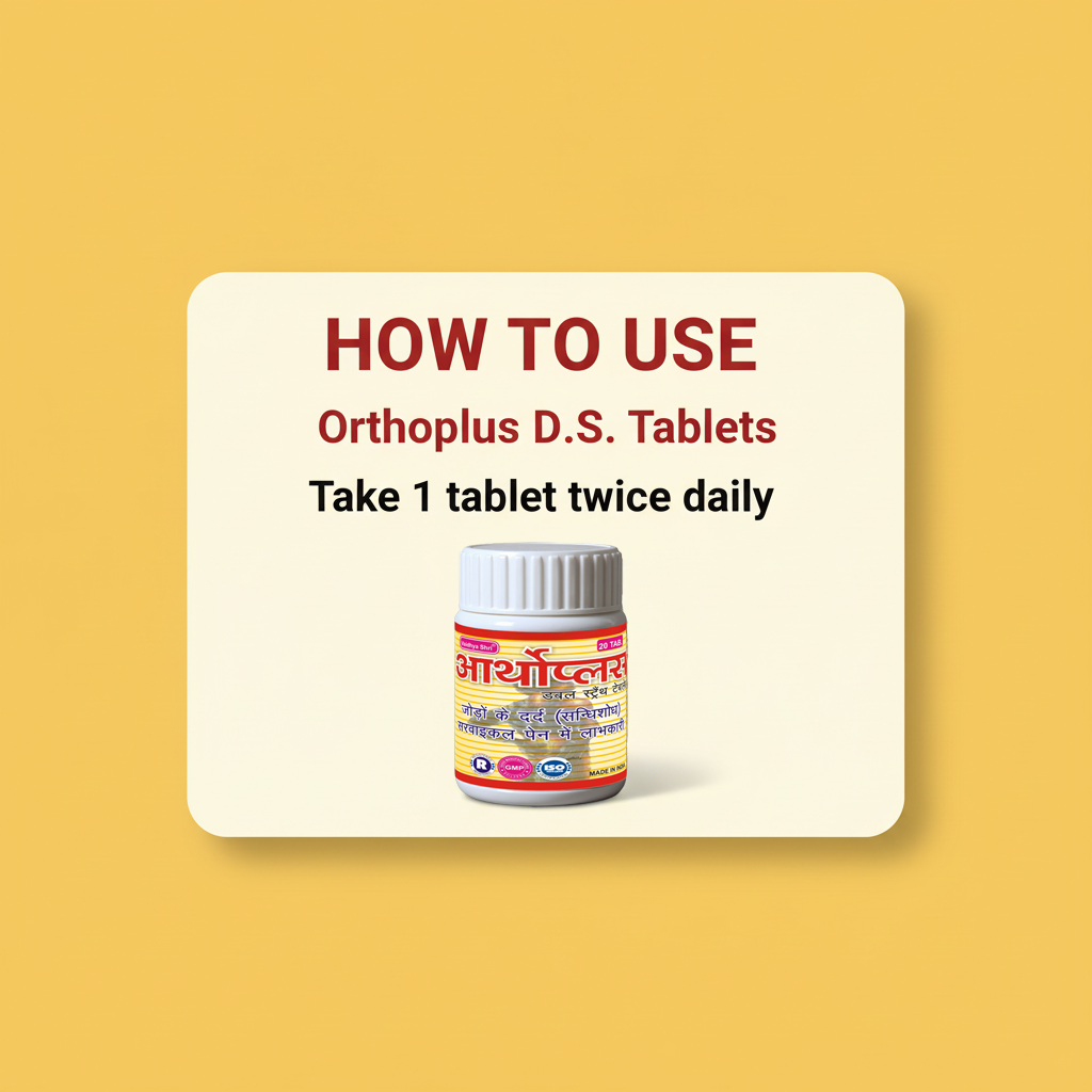 Orthoplus D.S Tablets is a double-strength Ayurvedic formulation designed for people suffering from joint pain, stiffness, swelling and bone weakness. It helps improve joint flexibility, reduce inflammation and supports overall bone health.