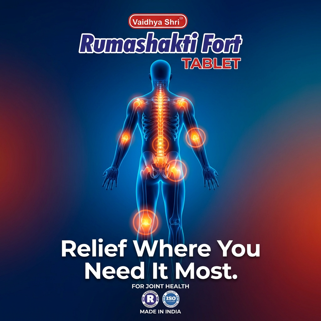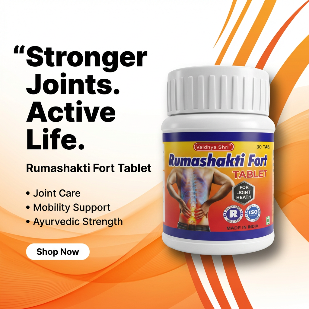 Rumashakti Fort Tablet joints aur connective tissues ko nourish karne ke liye banaya gaya hai. Yeh formulation joint stiffness, discomfort aur movement issues mein natural support deta hai.