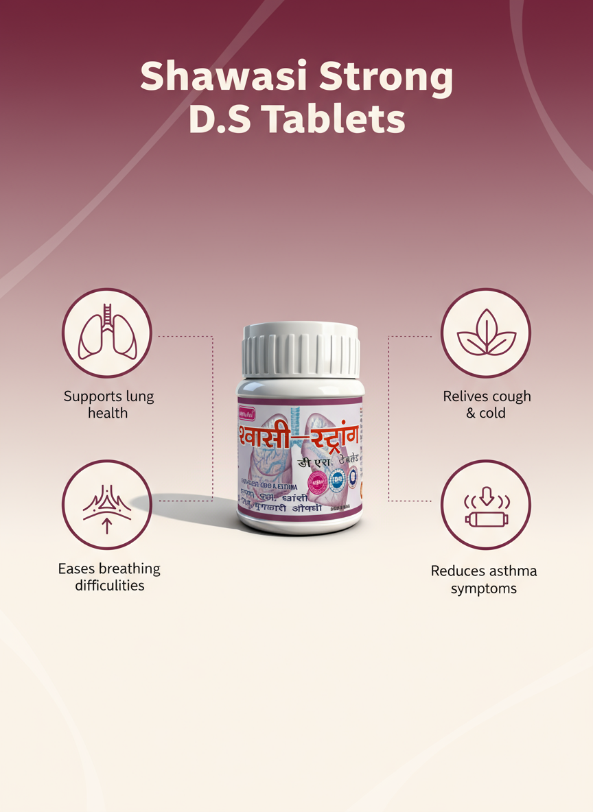 Shawasi Strong D.S Tablets are a premium Ayurvedic formulation crafted to enhance strength, stamina, and overall vitality. Enriched with potent herbs known for their restorative properties, these tablets support physical performance, boost energy levels, and help combat fatigue.